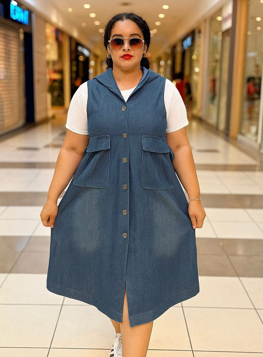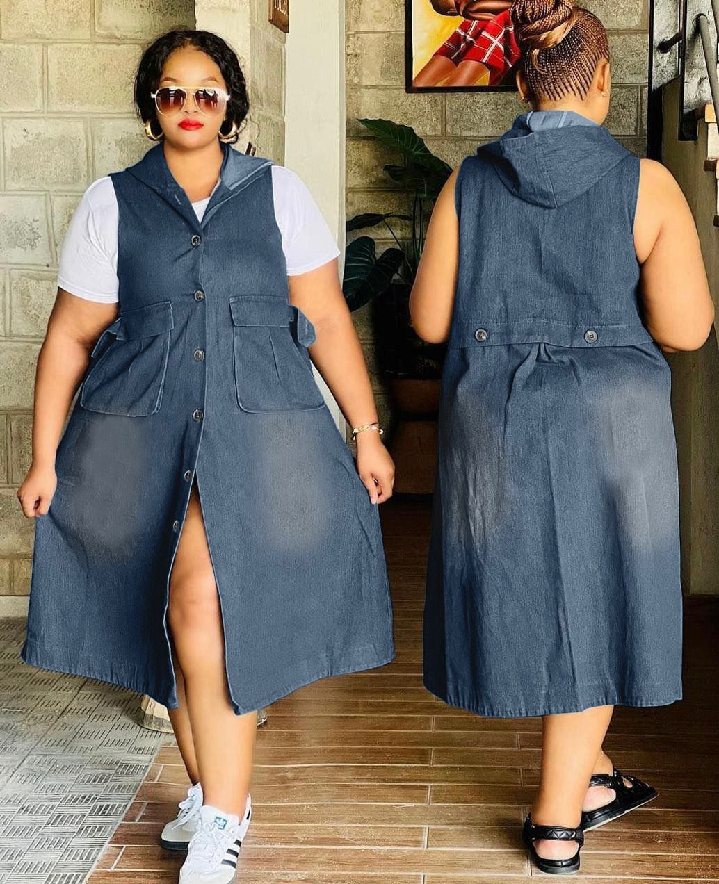 Denim Hooded Button Dress (FA-4409)