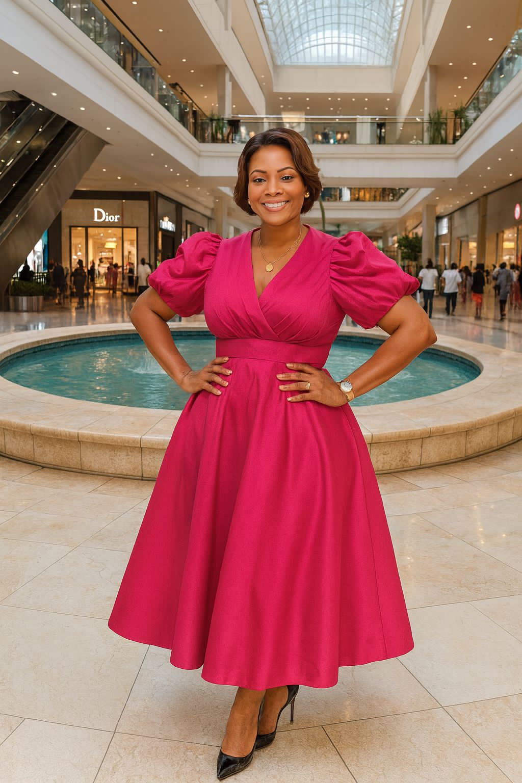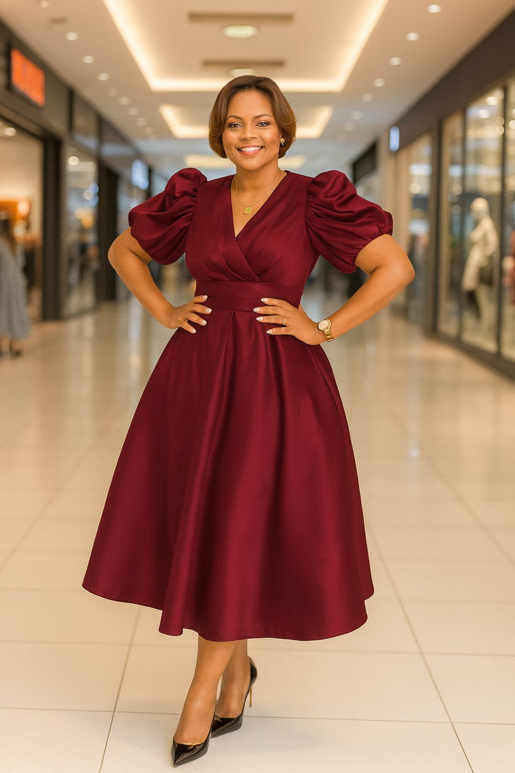 Woman’s V- Neck Short Sleeve Silky Dress (MQ-2066)