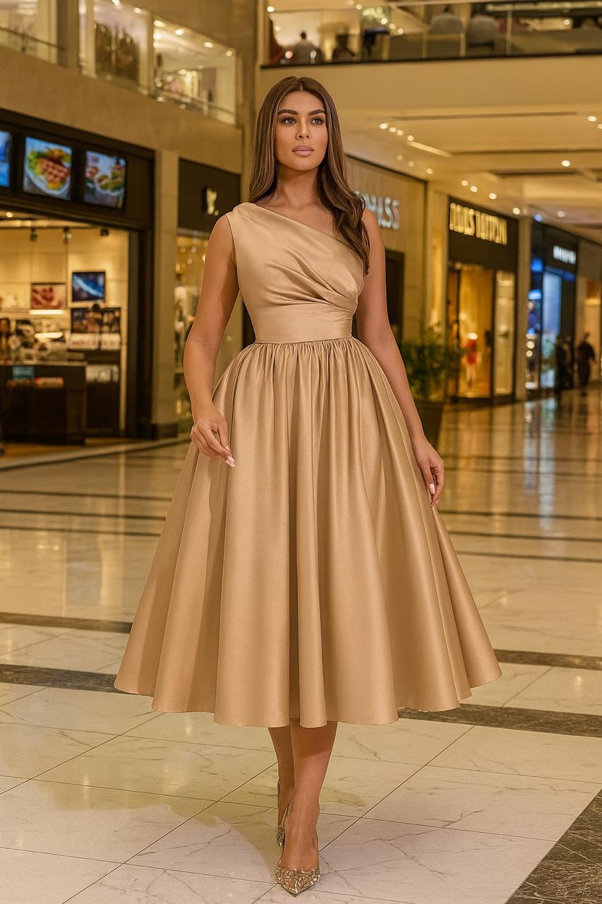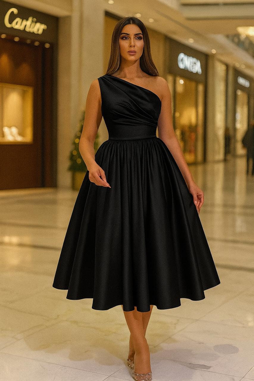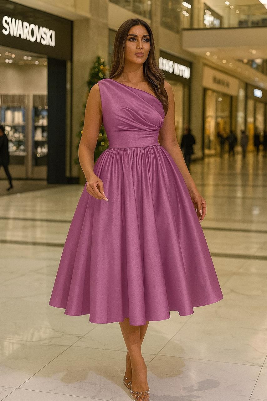 Women’s Short One Shoulder Satin Dress (Q-21448)